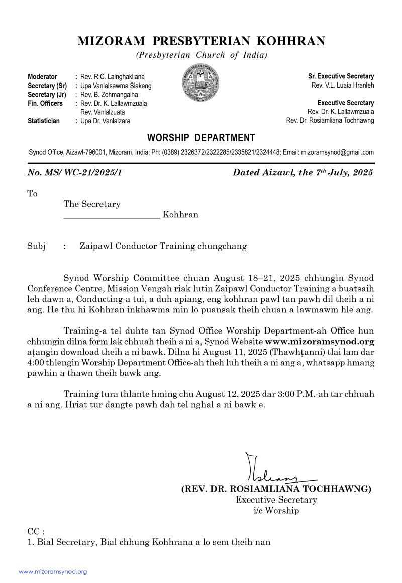 Zaipawl Conductors' Training, 2025 Chungchang & Dilna Form