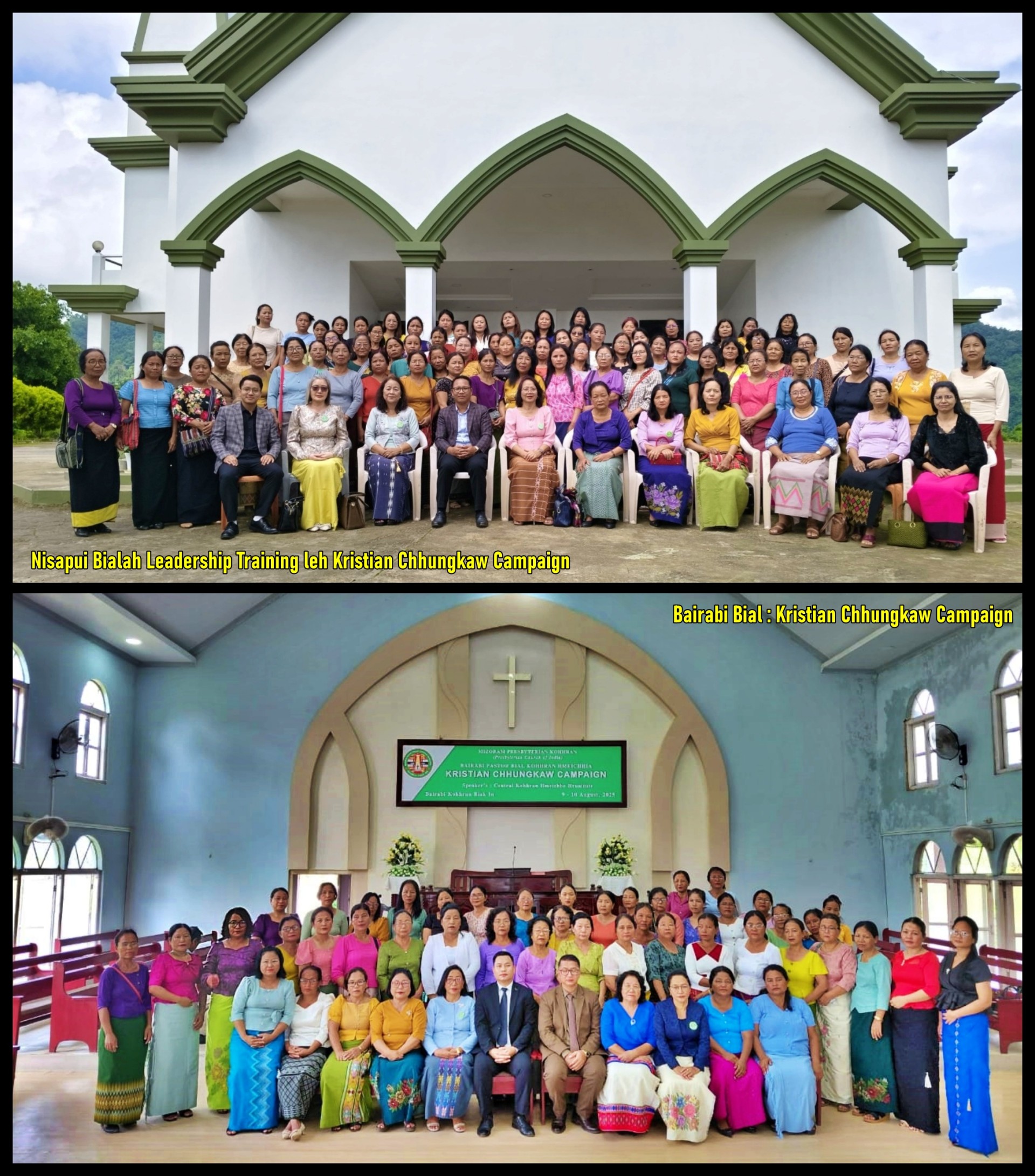 August 9-10, 2025 chhung khan Nisapui Bialah Leadership Training leh Kristian Chhungkaw Campaign neiin Pi Zohmingliani, Fin. Secretary leh committee member-te, Pi Lalrawngbawli, Pi Lalthangmawii leh Pi Hranghmingthangi te an kal.