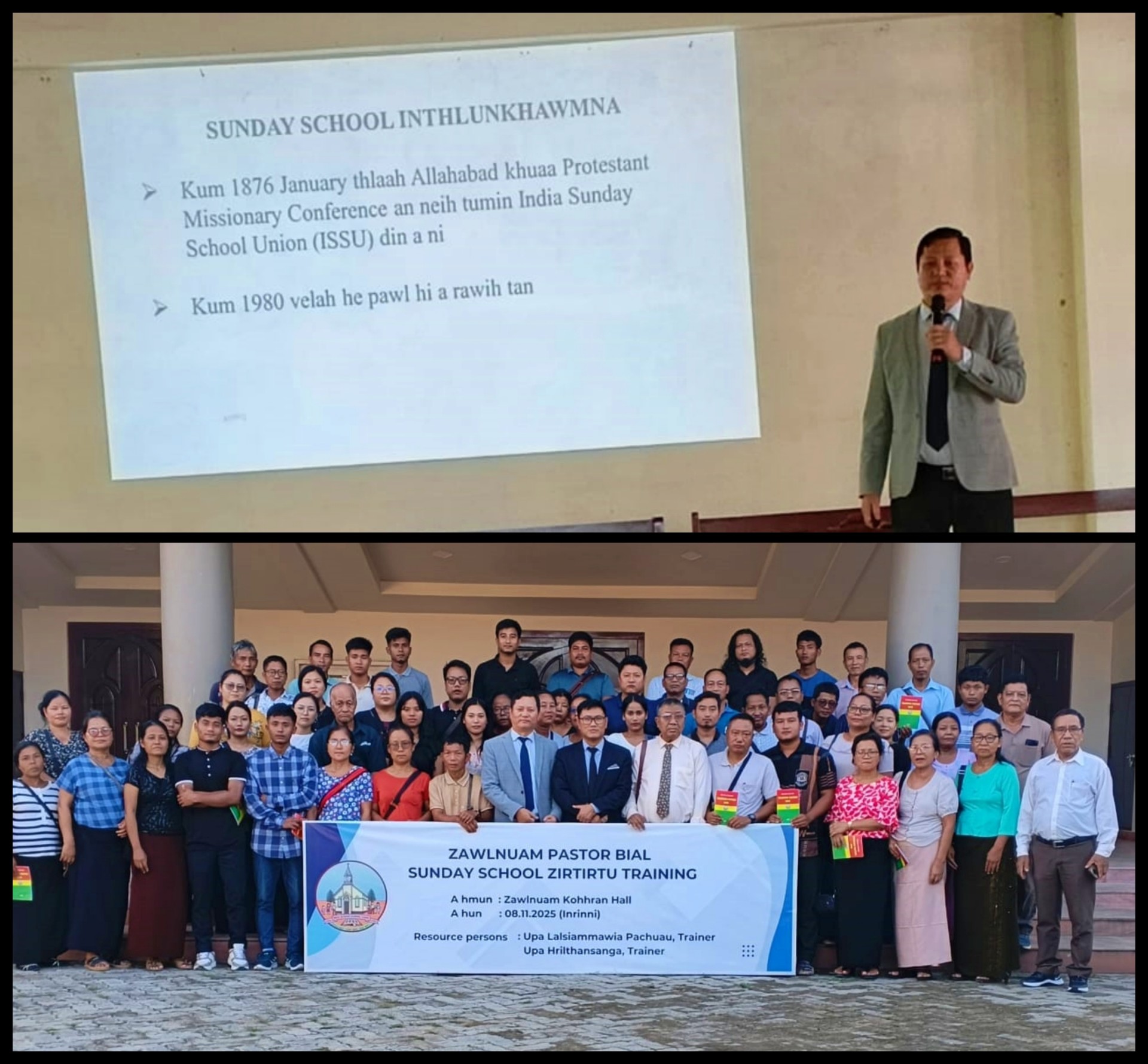 November 8, 2025 (Inrinni) khan Zawlnuam Kohhranah Sunday School Zirtirtu training neihpuiin trainer-te, Upa Hriltlansanga leh Upa Lalsiammawia Pachuau te an kal.