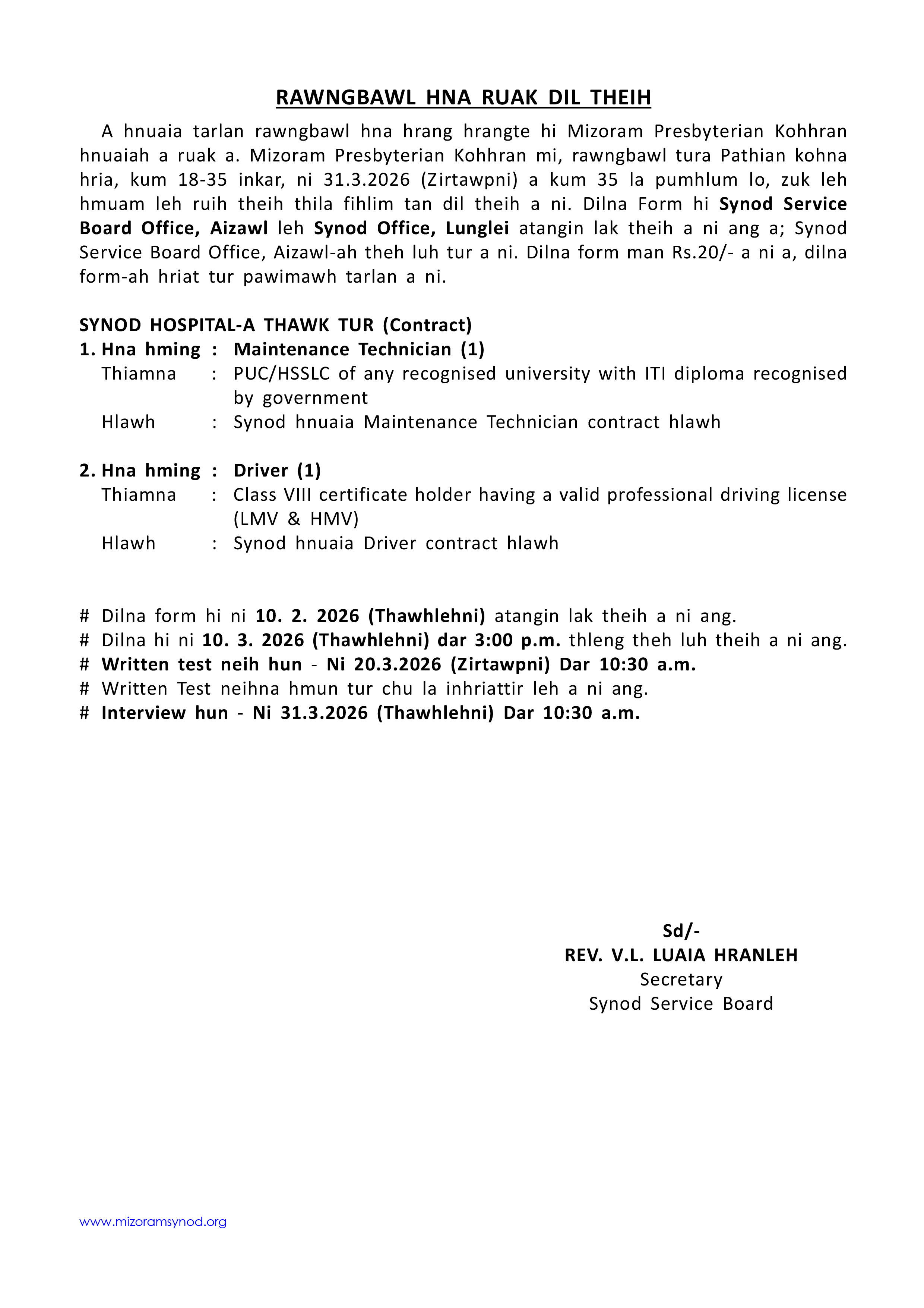 Rawngbawl hna ruak - February 6, 2026